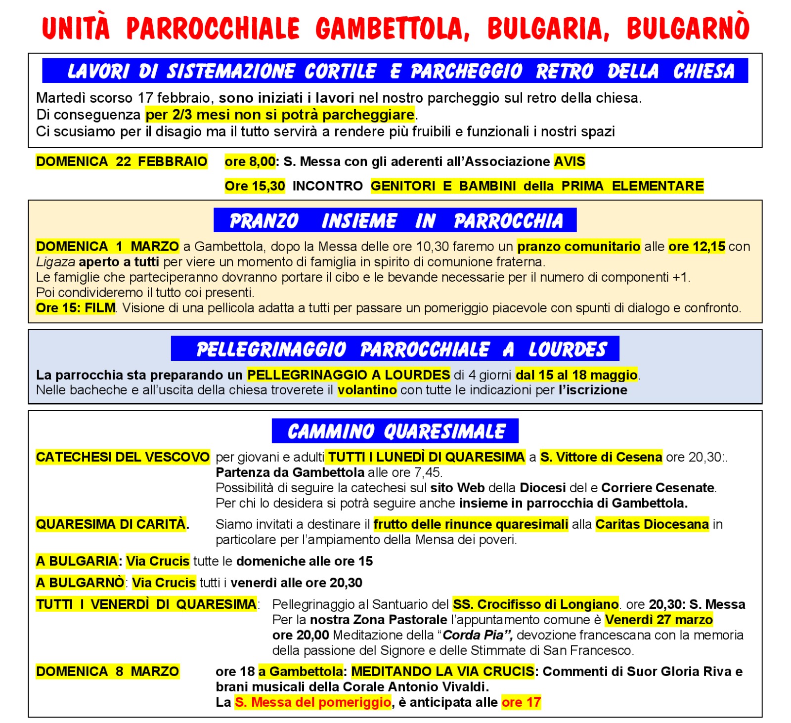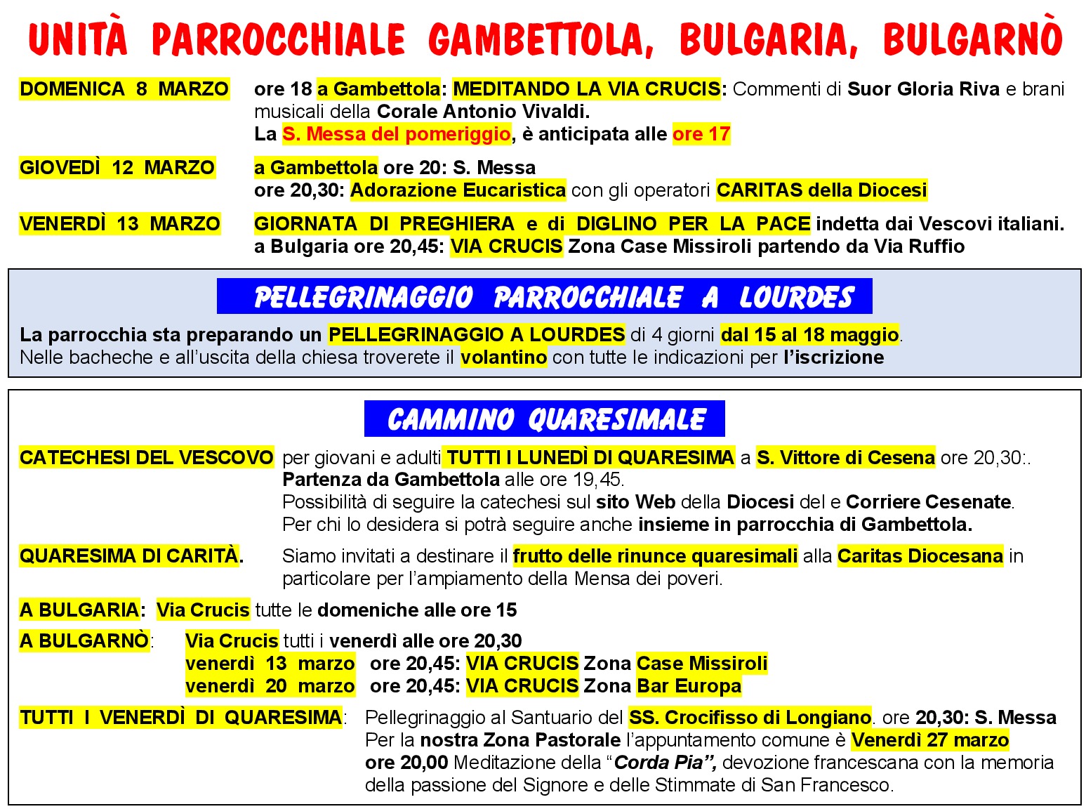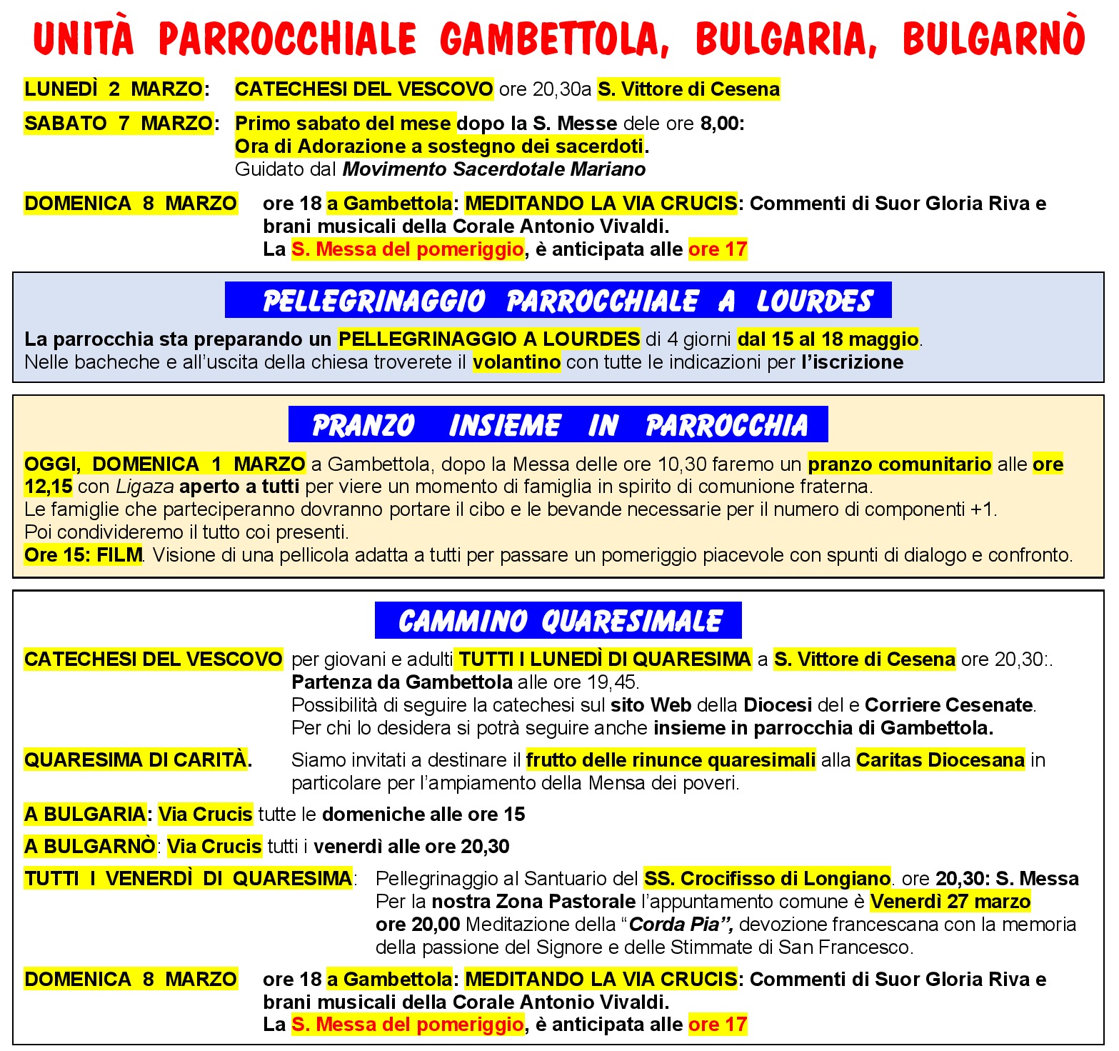 il 27 Marzo sarà dedicato alla nostra zona con la presenza del Vescovo