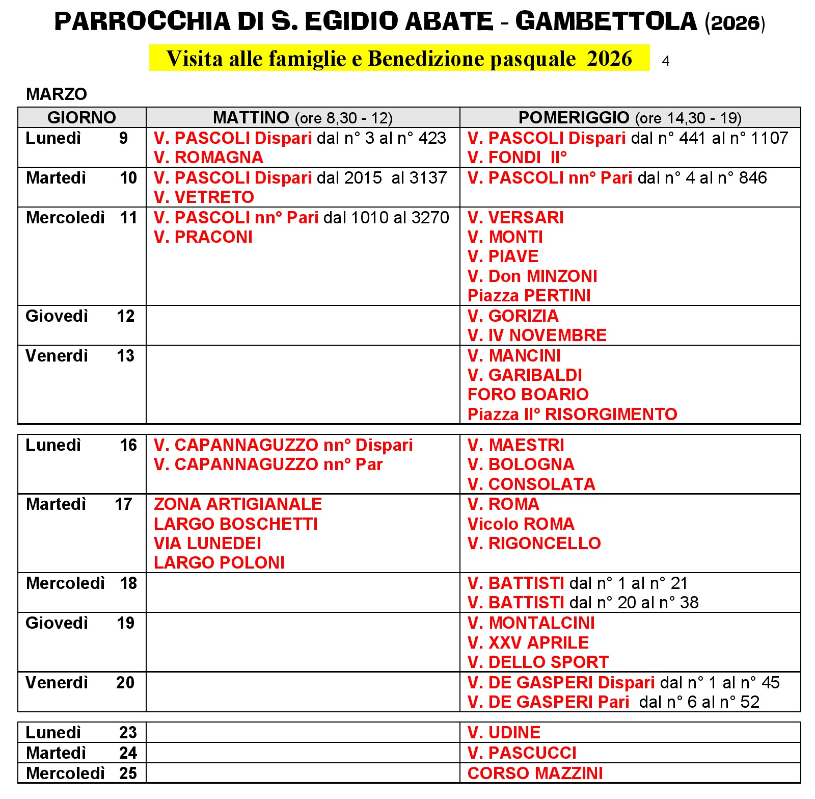 Continuano le benedizione alle famiglie clicca qui sotto per il calendario delle vie: